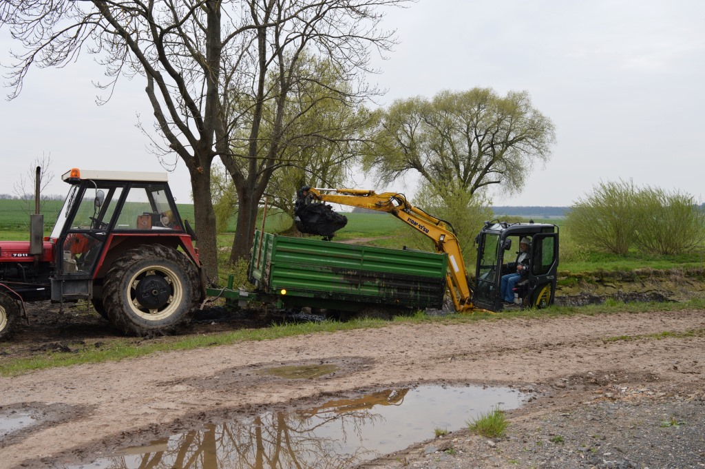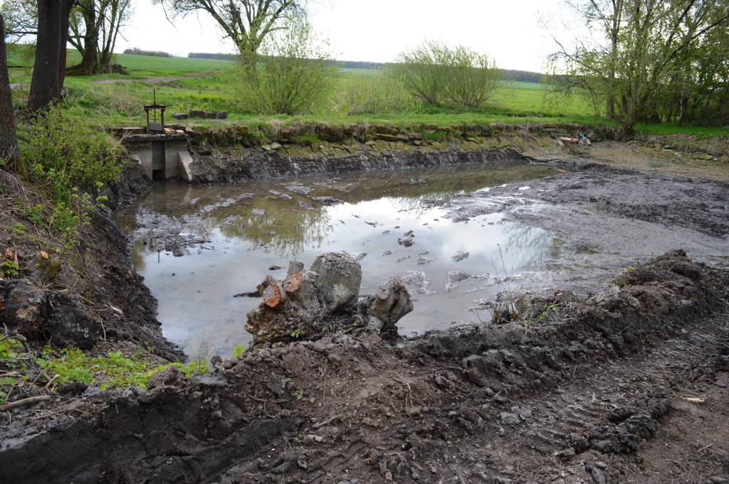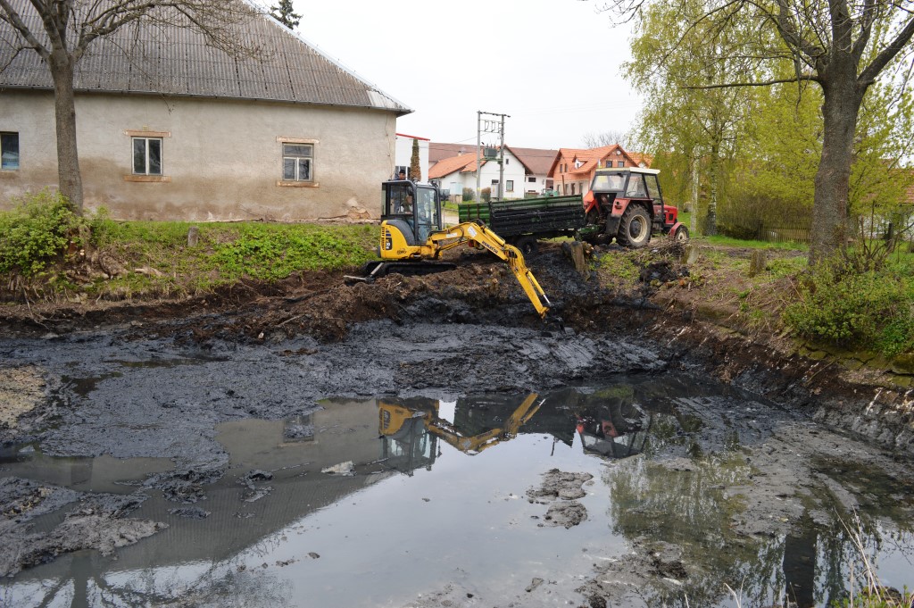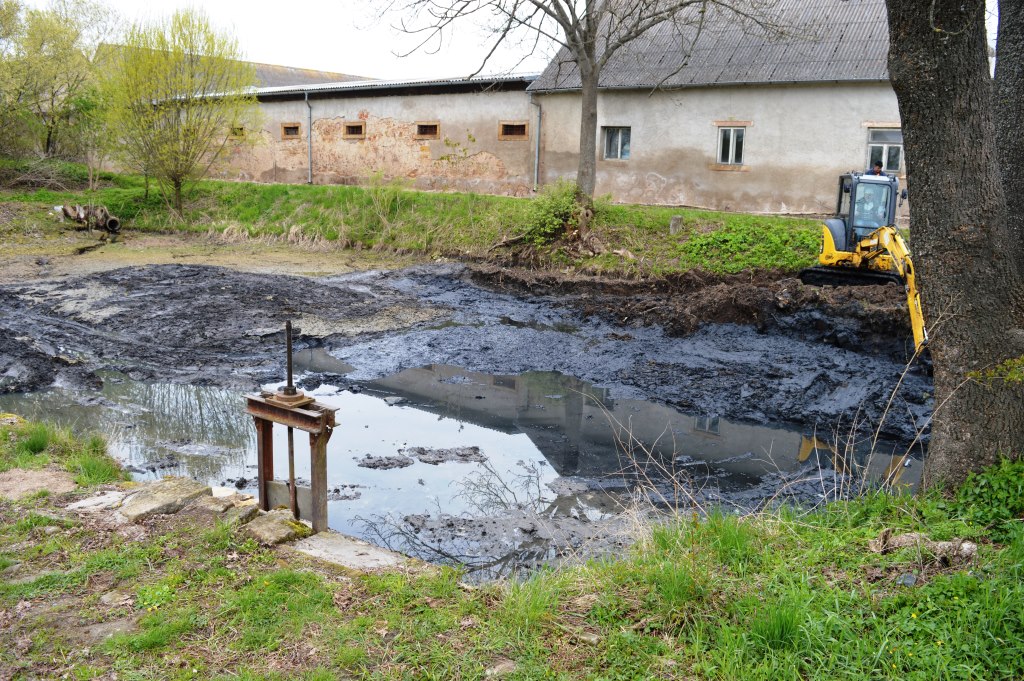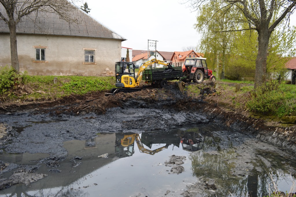 Zaměstnanci obce a Agra Chomutice v dubnu společně vyčistili rybníček v Chomutičkách.